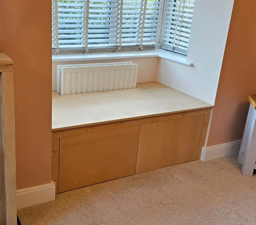 Every home has its quirks — those awkward nooks, unusual corners, and spaces that standard off-the-shelf furniture simply can't accommodate. That's where our bespoke carpentry really comes into its own. We specialise in designing and building custom cabinetry that works perfectly within your unique space, no matter how tricky or unconventional it may be. One of our most popular solutions is the built-in window seat — a beautiful and practical addition to any home that combines a cosy seating area with clever concealed storage underneath, all custom built to fit your exact window recess perfectly.