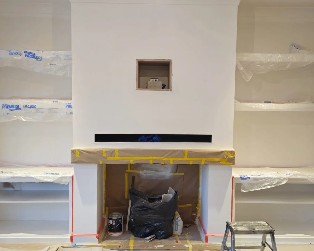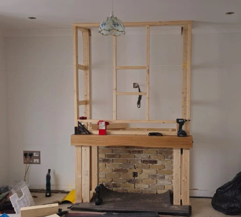 To finish the look, we dress the fireplace area with brick slip tiles, adding an exposed brick effect that looks incredibly realistic and adds real texture and character to the room. We can also source and fit rustic solid oak mantlepieces, adding a natural, timeless charm to your fireplace, as well as elegant slate hearths that complete the look beautifully. The result is a feature wall that looks like it has always been there — a perfect blend of style, storage, and cosiness that completely transforms your living space.