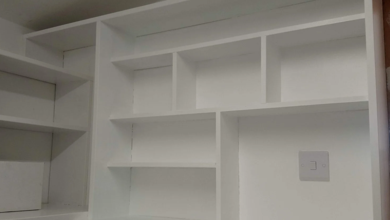 Installation of fitted shelves, floating shelves, MDF shelves, hardwood shelves. Make the most of your home's natural features with our bespoke alcove shelving and base unit solutions. Whether you have a single alcove or a pair either side of a chimney breast, we design and fit beautiful, made-to-measure shelving and base units that perfectly fill the space and add real character to your room. Built to your exact requirements, our alcove units will be constructed from MDF or plywood, bespoke cabinet doors in any style, finished in paint of your choice, giving you a clean, seamless look that blends effortlessly with your home's style.